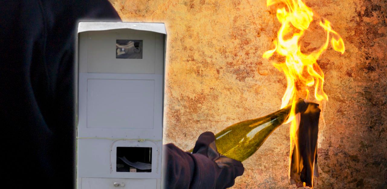 Das Gerät wurde mit einer Art Molotov-Cocktail beworfen.
