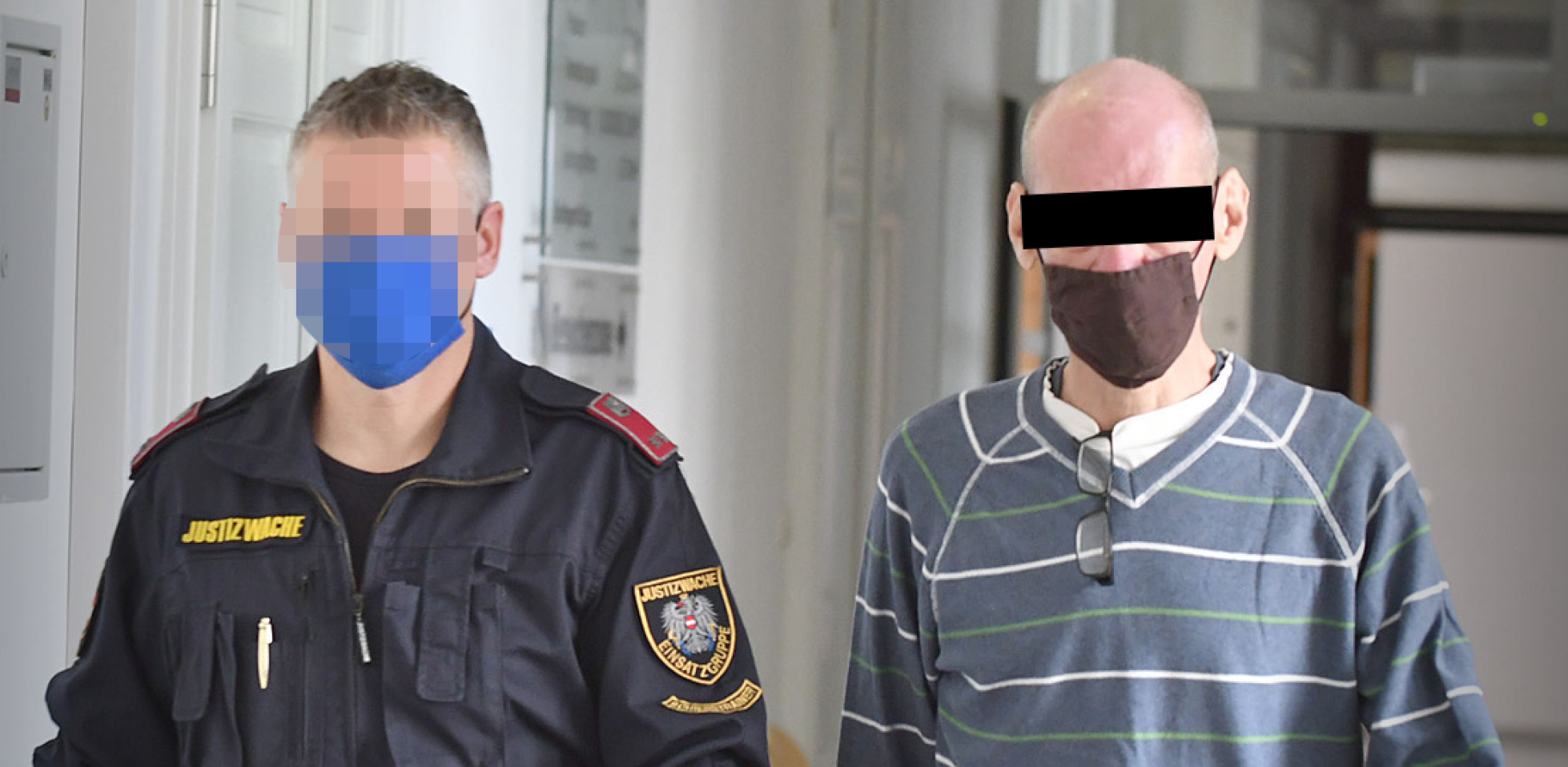 Ein Justizbeamter bringt den Angeklagten in den Gerichtssaal.