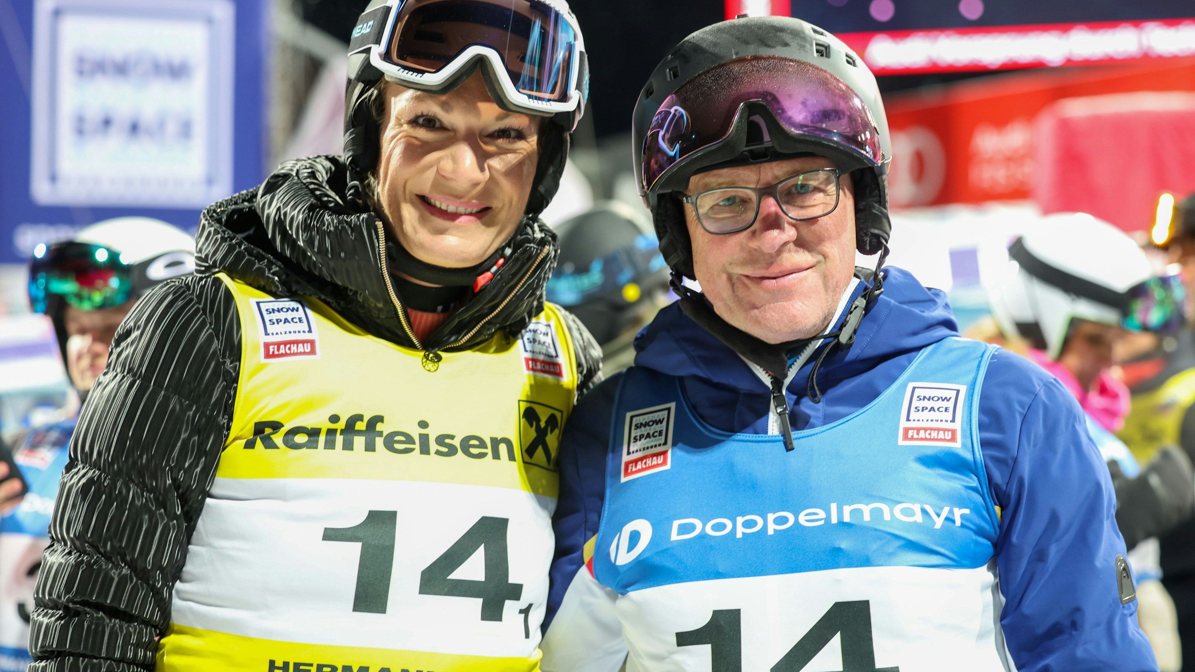 Maria Höfl-Riesch mit Ralf Rangnick bei der Hermann Maier Star Challenge.
