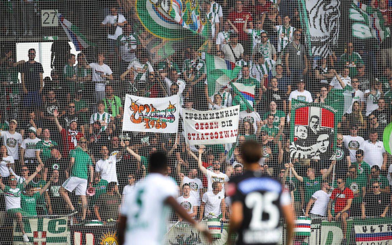 Rapid Fans während dem Europa-League-Play-off Rückspiel zwischen SK Puntigamer Sturm Graz und SK Rapid Wien am Sonntag, 02. Juni 2019, in Graz.