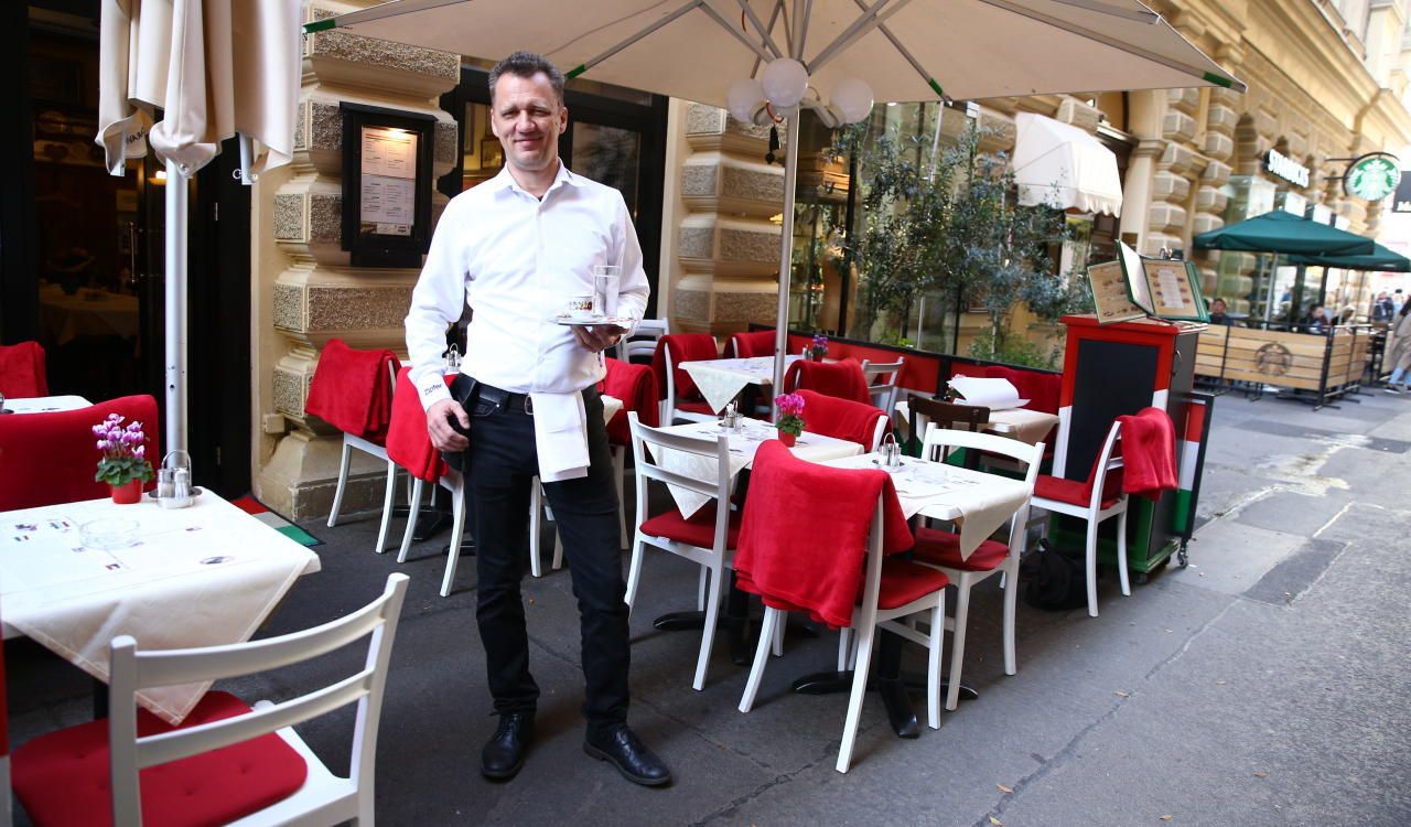 Kellner vor dem Ilona-Stüberl.