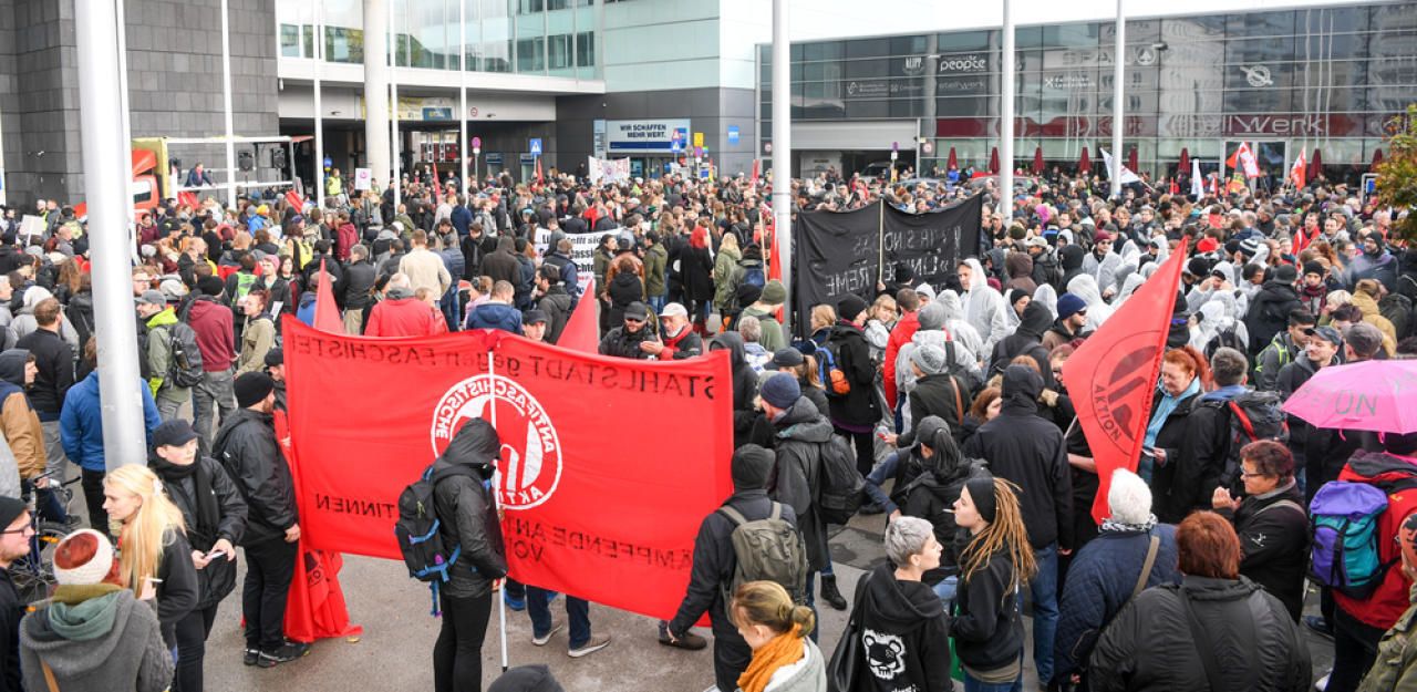 Beim Rechten-Kongress im Vorjahr: Demonstranten vor dem Linzer Hauptbahnhof