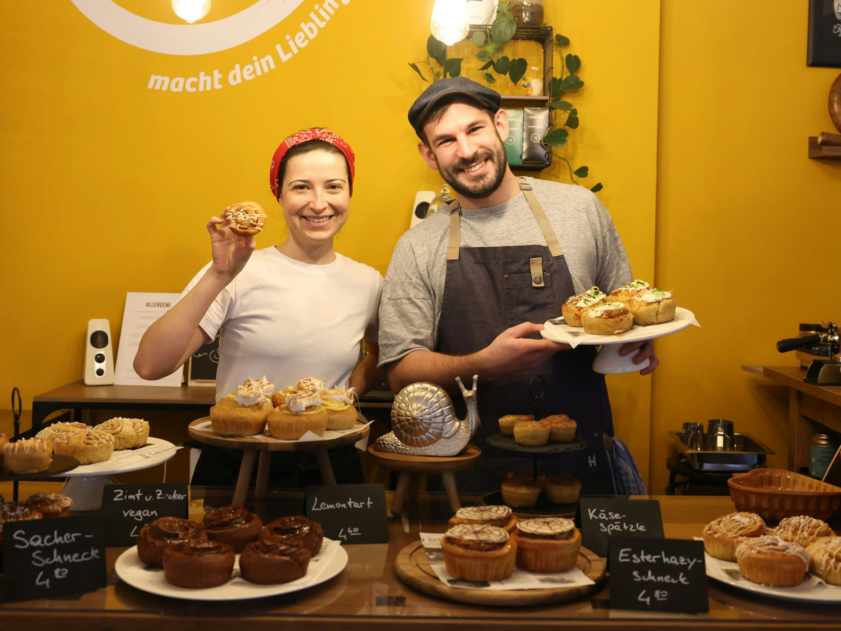 Manuel Horacek (32) ist Bäcker im "Herr Schneck" in Wien-Mariahilf, Bettina Zoller (35) ist seine helfende Hand und "gute Fee".