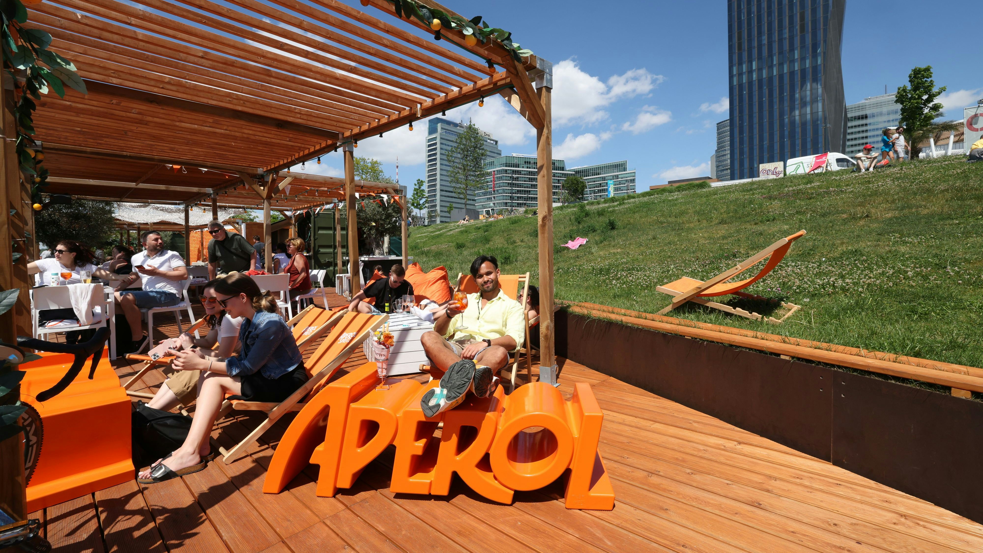 Der gemütlichste Platz für den Feierabend am Copa Beach (Donaustadt) ist der neue Loungebereich von "Aperitivo e Amore".