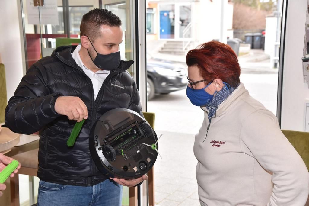Schmankerladen-Besitzerin I. Pruckner bekam neuen Saugroboter
