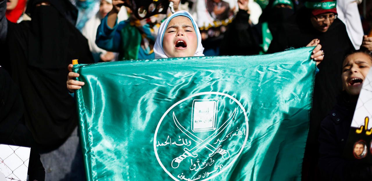 (Symbolbild) Flagge der Muslimbruderschaft bei einem Protest in Amman, Jordanien.