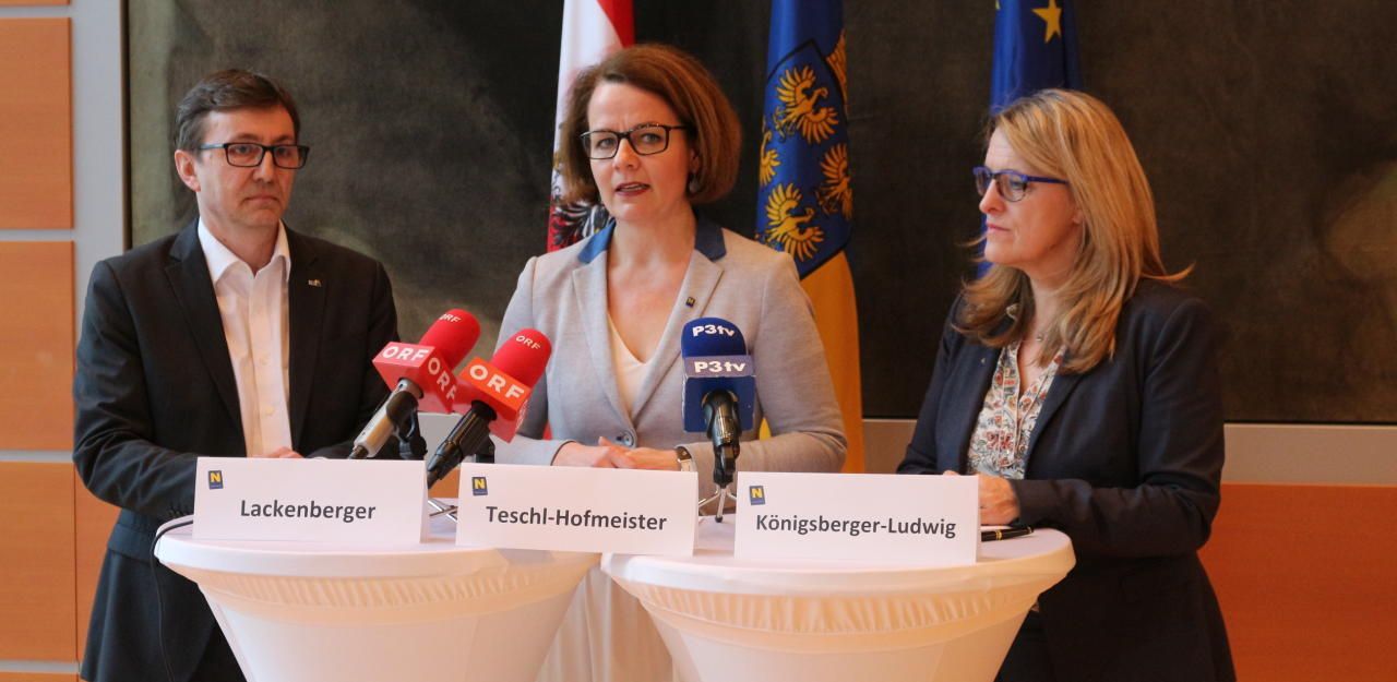 Landesrätin Christiane Teschl-Hofmeister (Mi.), Geschäftsführer Michael Lackenberger (l.) und Landesrätin Ulrike Königsberger-Ludwig (r.) präsentierten die Jahresbilanz 2018 der NÖ Schuldnerberatung.