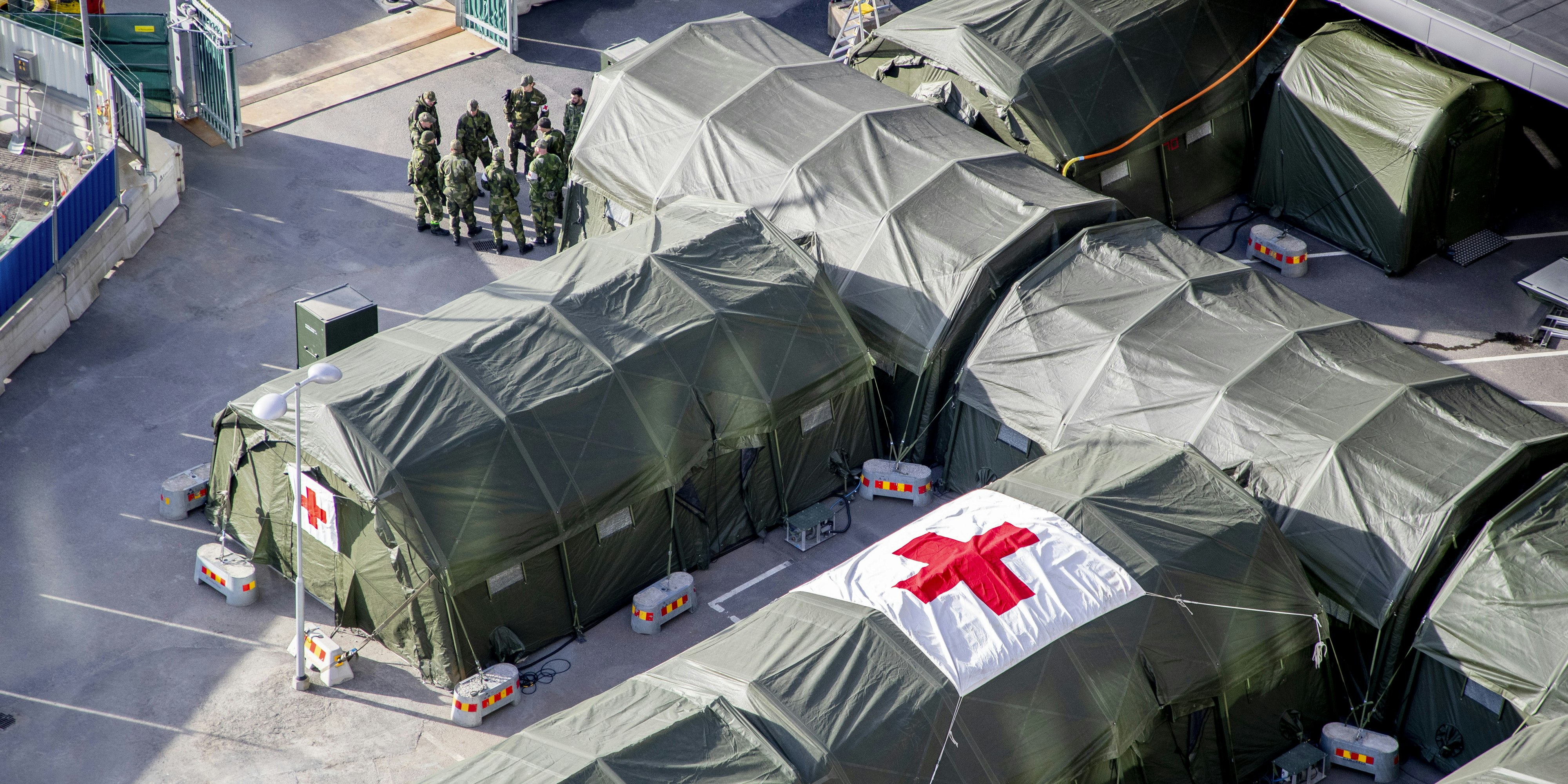 Beim Ostra Sjukhuset Hospital im schwedischen Gothenburg hat das Militär ein Corona-Notspital errichtet.