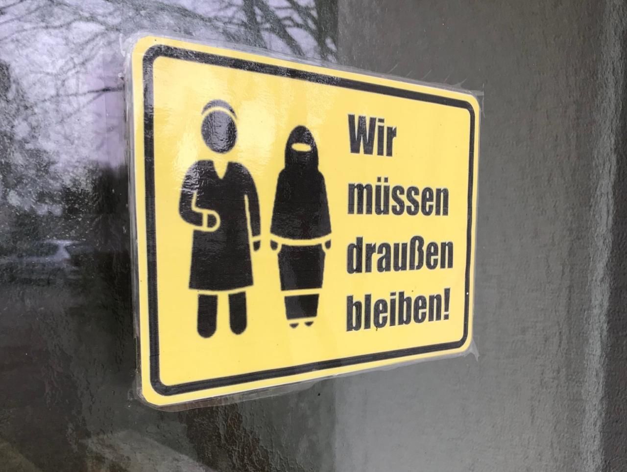 "Islamophobie von der gröberen Sorte... angebracht am Hauseingang eines nicht unbekannten Gewerbetreibenden im Kanton Aargau", prangert der IZRS auf Twitter an.