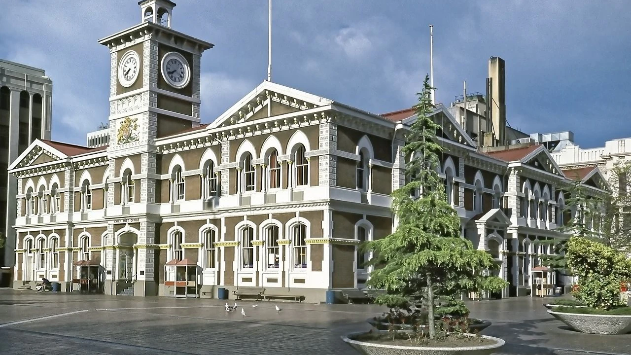 Zerstörtes Postgebäude in Christchurch nach Erdbeben