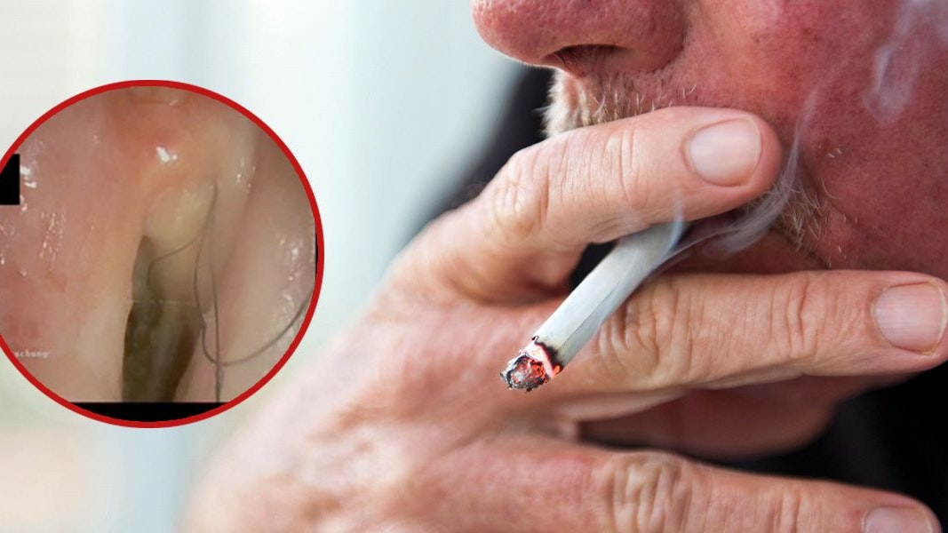Es befanden sich sechs bis neun 2-Zentimeter-Haare im Rachen des Mannes (kl. Bild), von denen einige durch den Kehlkopf in den Mund wuchsen.