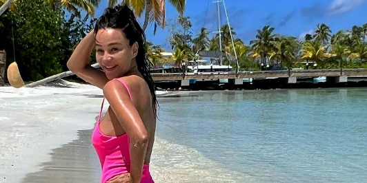 Im pinken Badeanzug präsentiert sich Verona Pooth ihren Fans.