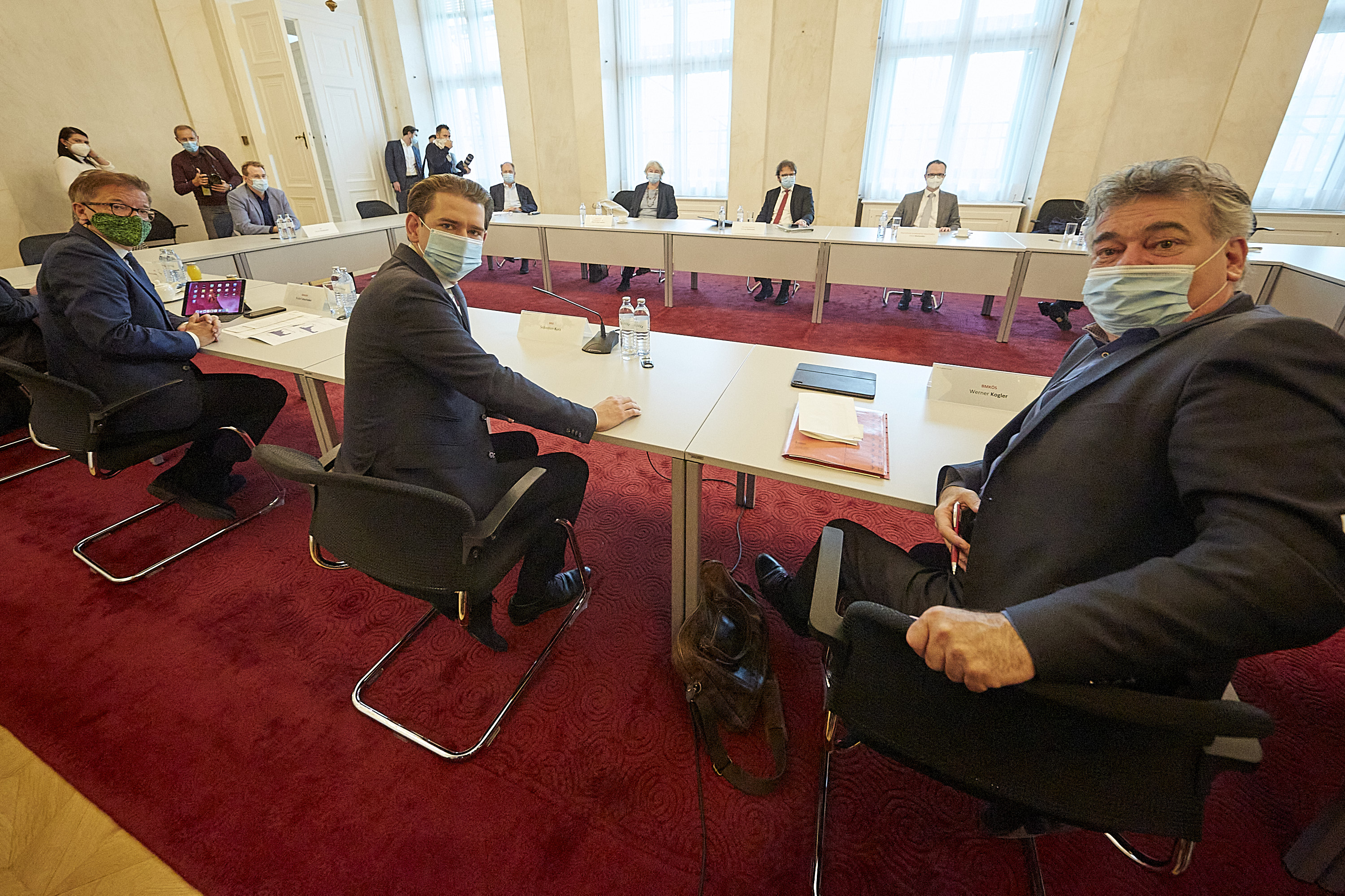 Treffen der Bundesregierung mit Experten zur Ressourcenlage (Intensivkapazitäten) an Österreichs Krankenhäusern am 29. Oktober 2020