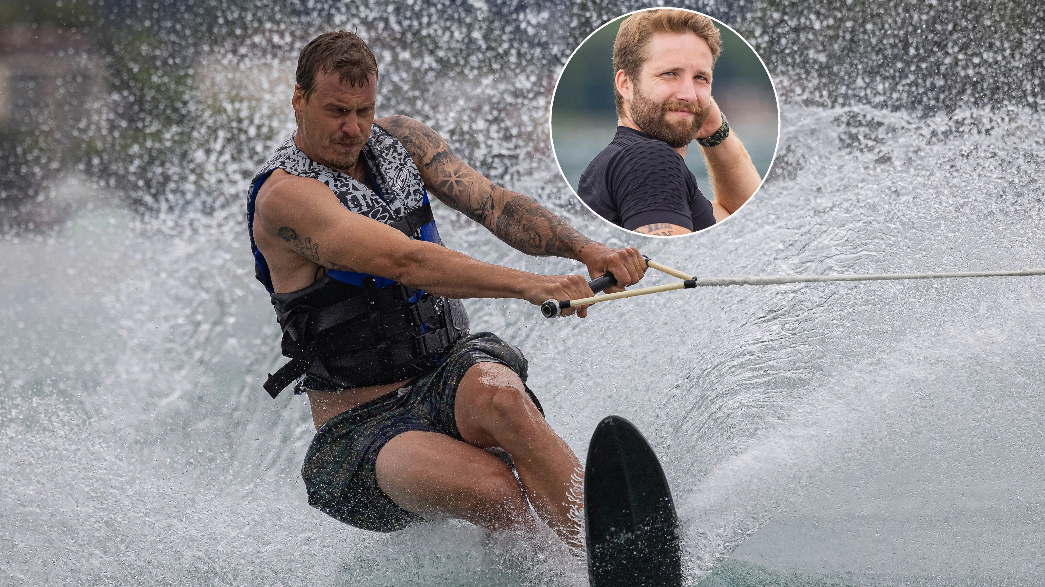 Manuel Feller mach auf Wasserski eine gute Figur, Marco Schwarz schaut (noch) zu.