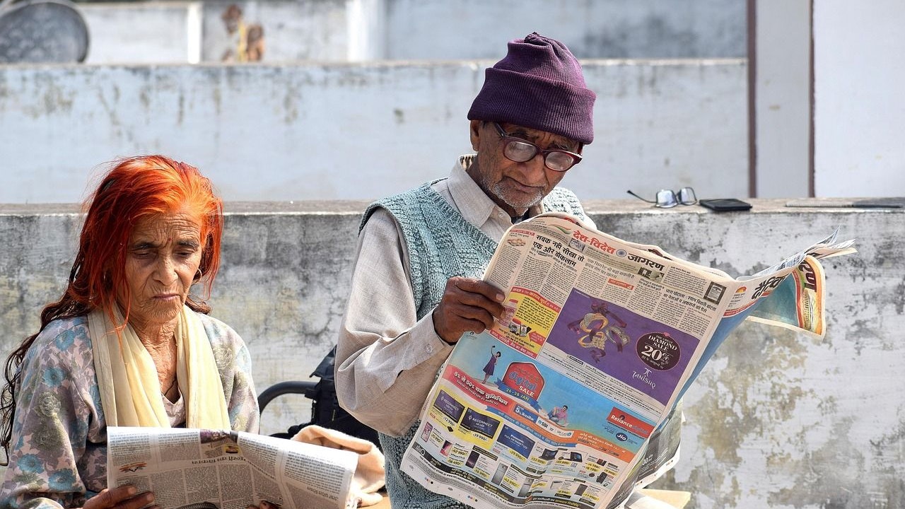 Seniorenpaar beim Zeitunglesen