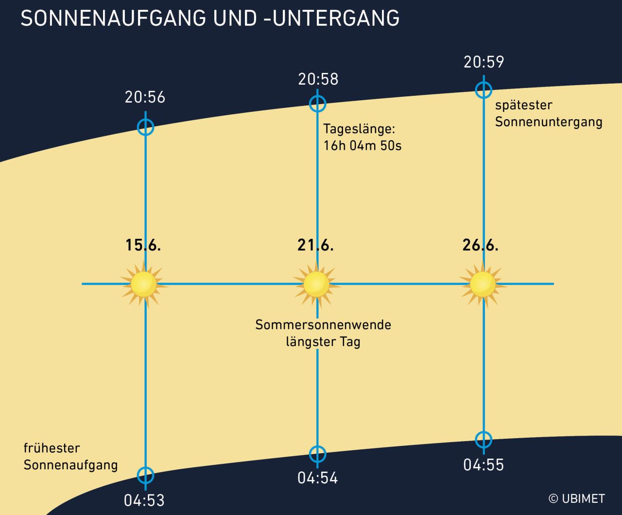 Sonnenaufgang und -untergang zum Sommerbeginn 2018.