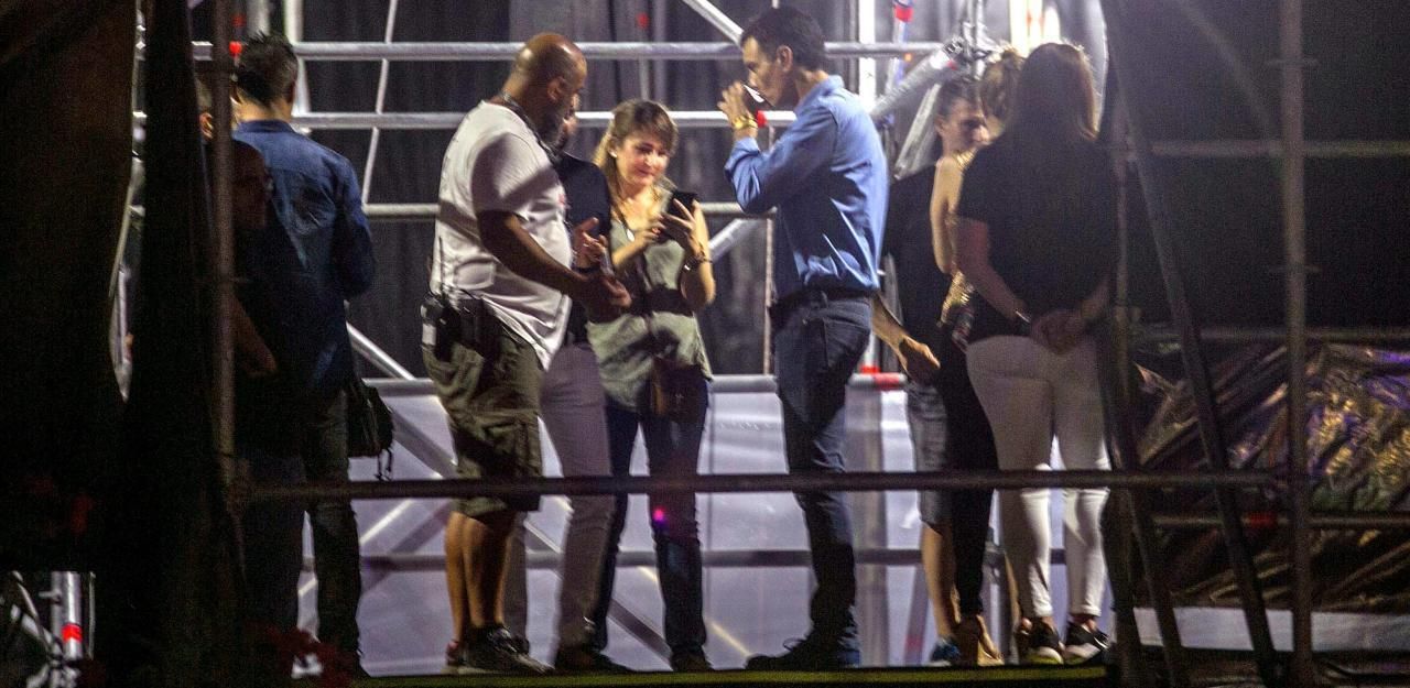 Spaniens Präsident Pedro Sanchez (blaues Hemd) und seine Frau Begona Gomez flogen mit dem Staatsjet zu einem Konzert der Killers in Benicassim