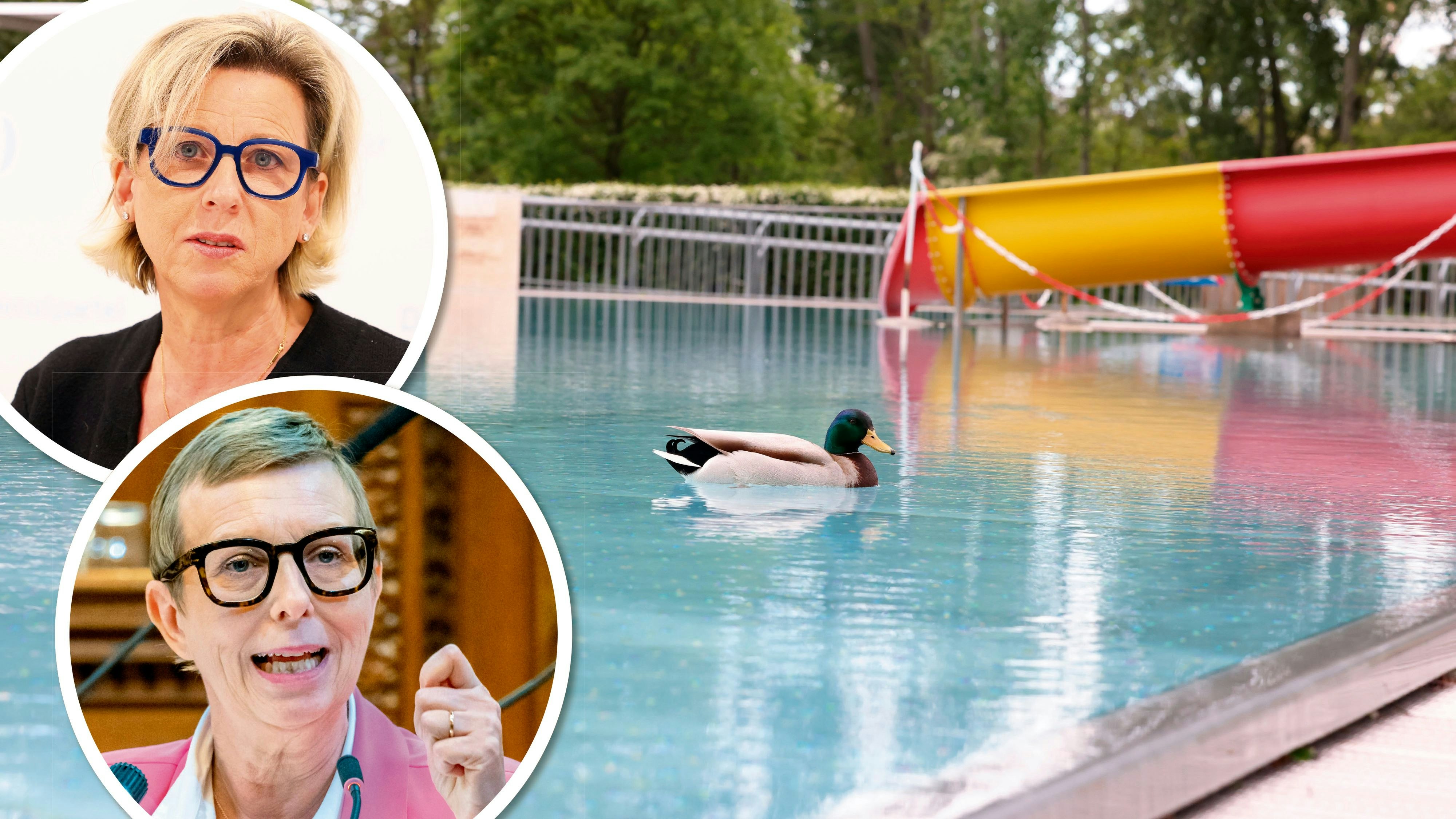 Ulrike Nittmann (FPÖ; oben) und Sabine Keri (ÖVP) kritisieren die geplanten Maßnahmen bei den Wiener Bädern.
