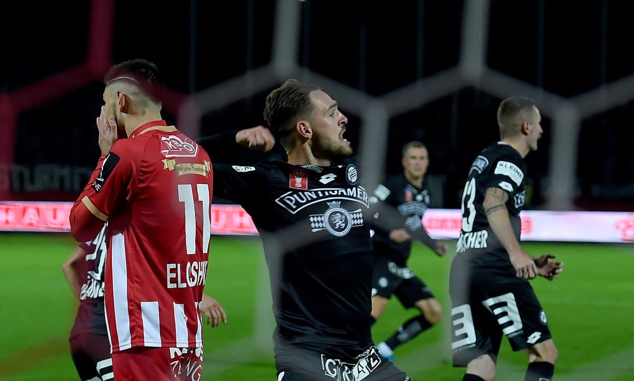Lukas Spendlhofer jubelt mit Sturm über den Sieg gegen Kapfenberg.