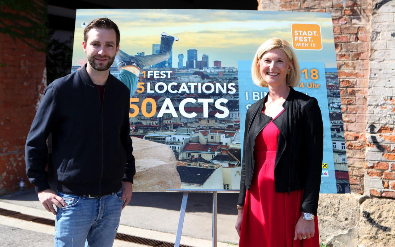 Chartstürmer Josh. und ÖVP Wien-Landesgeschäftsführerin Bernadette Arnoldner stellen heute das Programm des Stadt.Fest.Wien vor. (c) ÖVP Wien