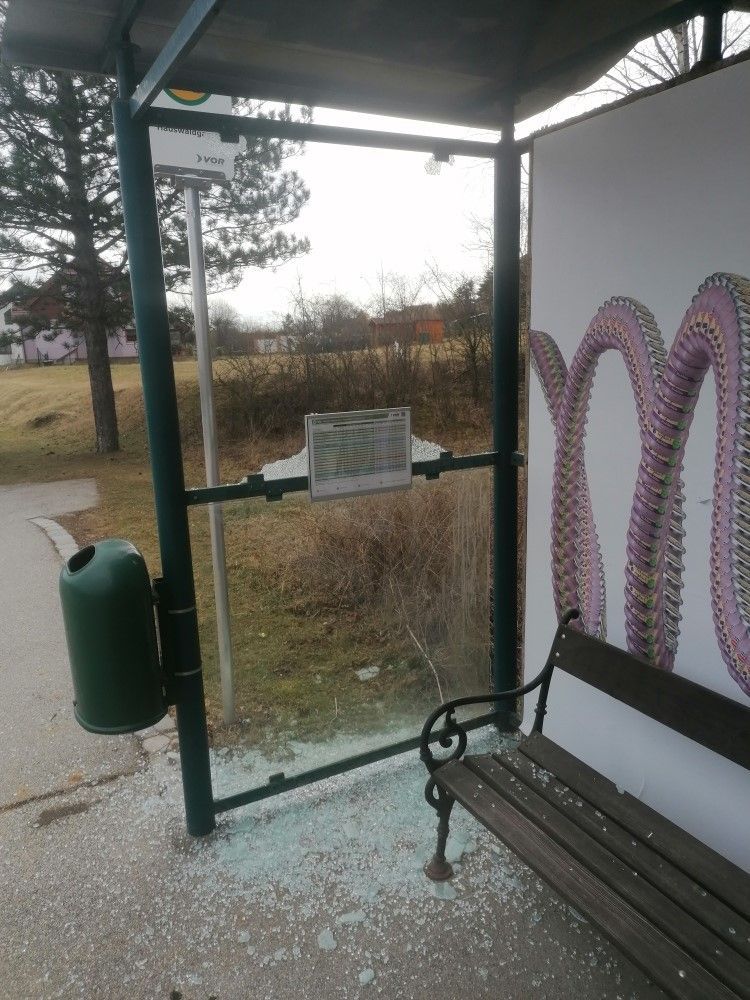 Die zerstörte Scheibe des Bus-Wartehäuschens