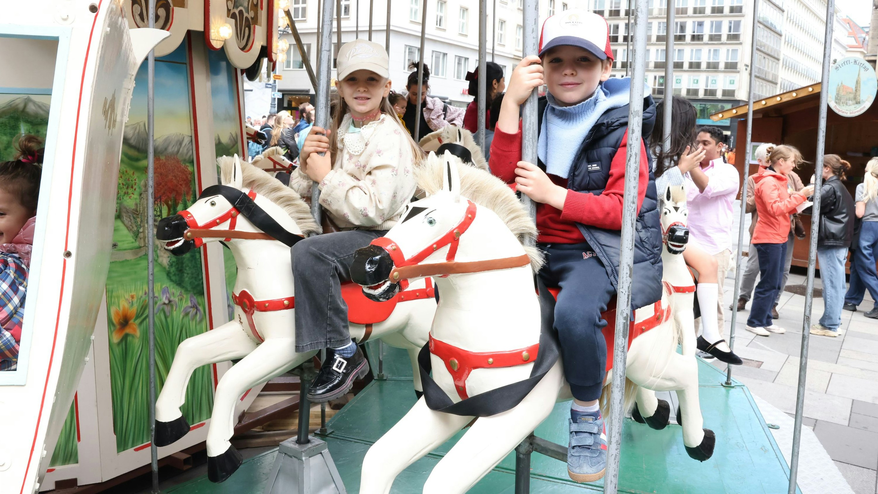 Spaß und strahlende Gesichter beim Karussellfahren auf den Steffl-Kirtagen