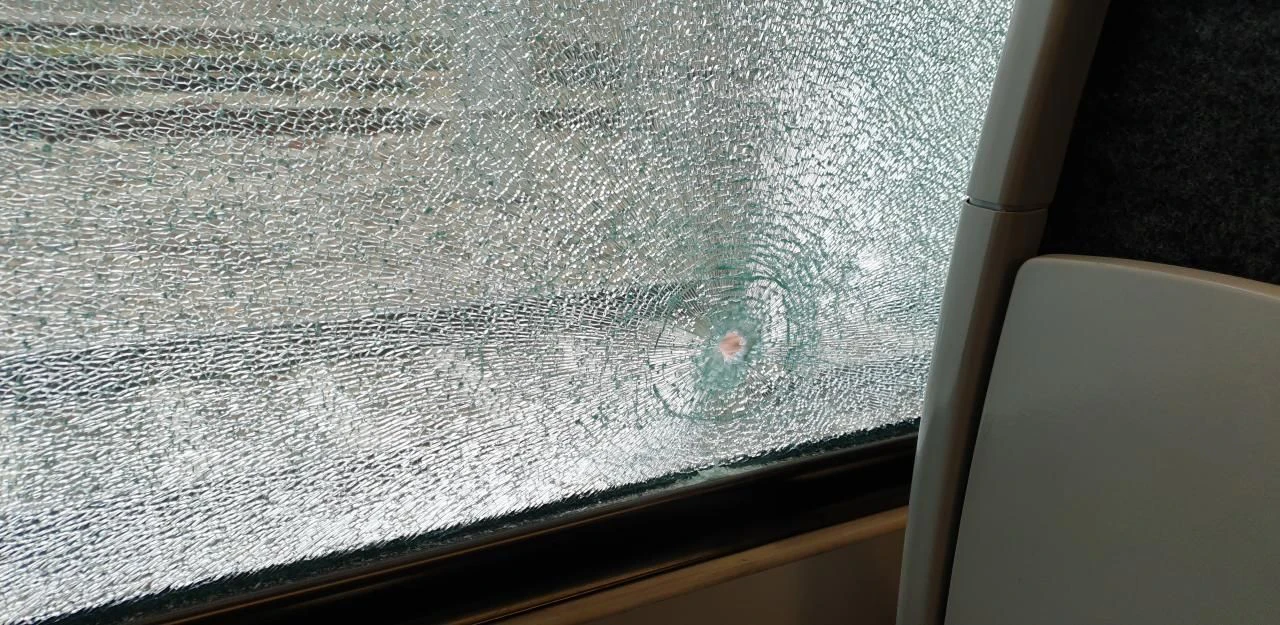 Originalbild der zerschossenen Scheibe.