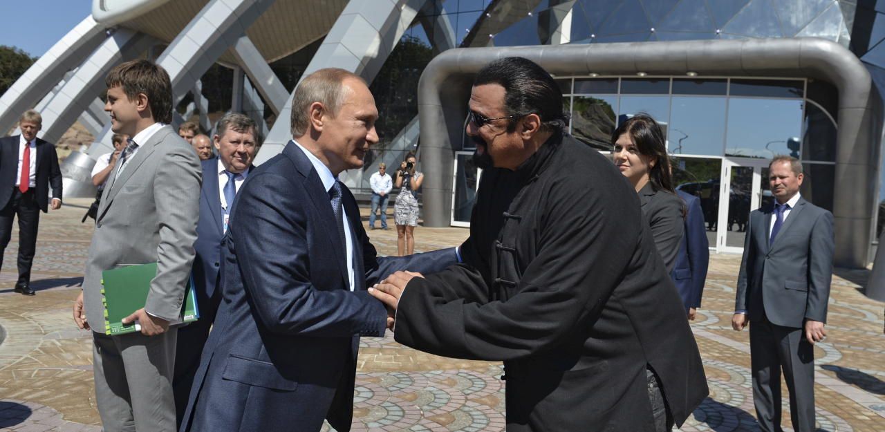 Russlands Präsident Wladimir Putin und Steven Seagal