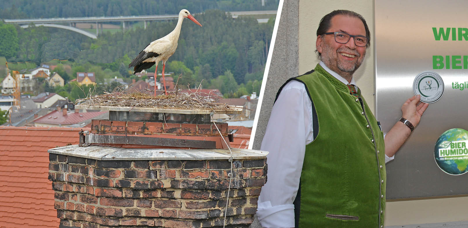 Seit sich ein Storch auf dem Dach der Braucommune sein Nest baut, sind fünf Kellnerinnen schwanger geworden.