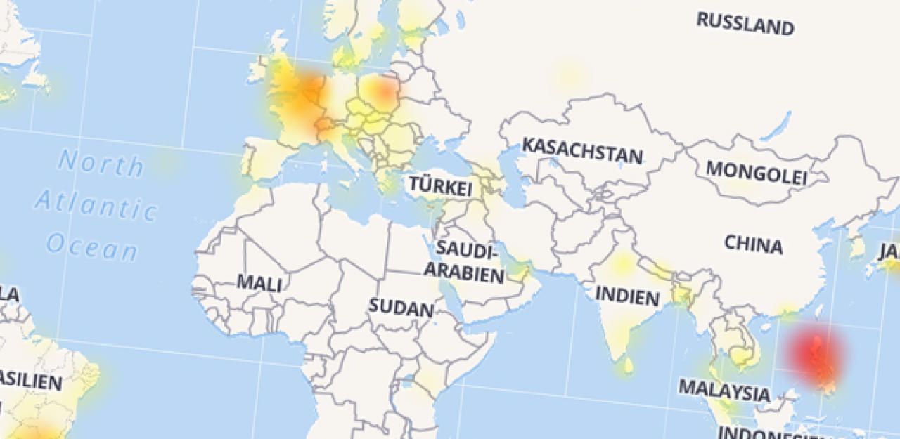 Die Störungskarte zeigt, welche Länder betroffen sind.