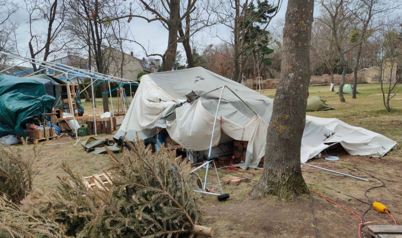 Die Zelte der Lobau-Aktivisten hielten dem Sturm nicht stand.