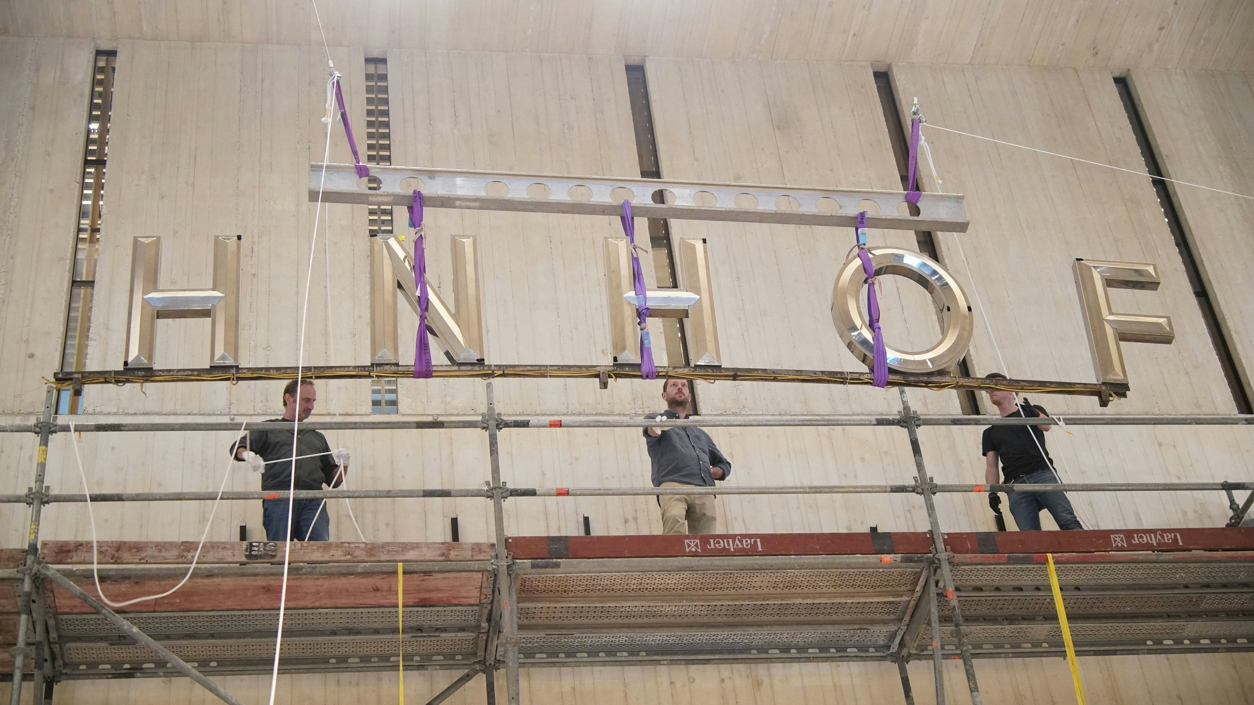 Der bekannte Schriftzug des Südbahnhofs wurde abmontiert und in der Halle des Wien Museums angebracht.