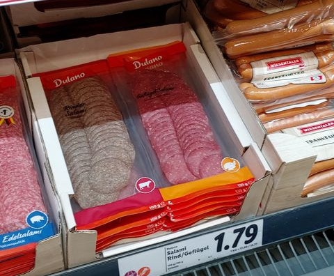 Die Gammelsalami sieht grau und ungenießbar aus.