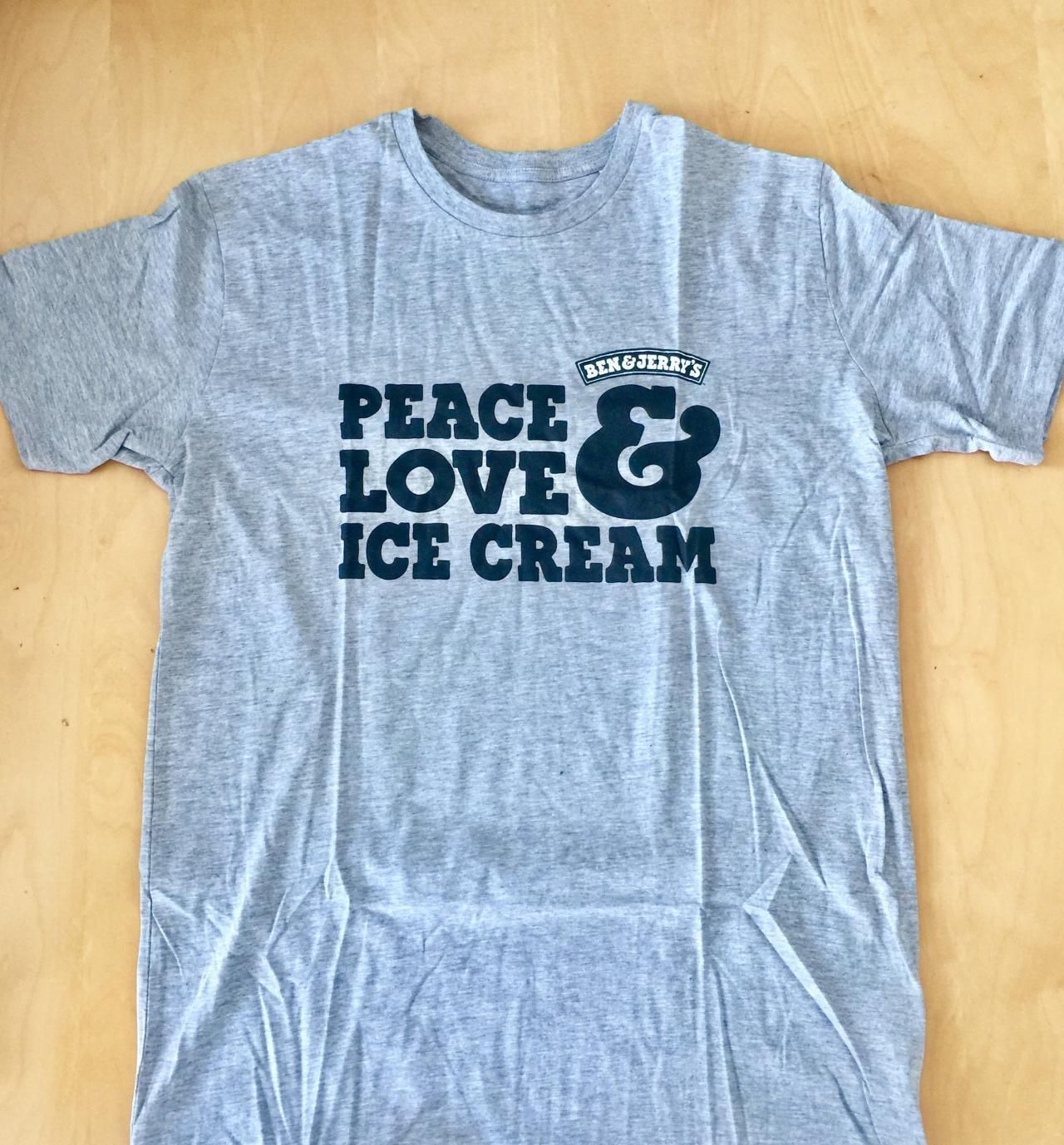 Gewinne 1 x T-Shirt von Ben & Jerry's "Peace, Love & Ice Cream".