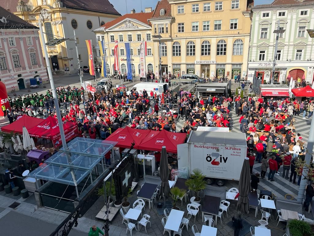 Rathausplatz in St. Pölten am Montag, 1. Mai.