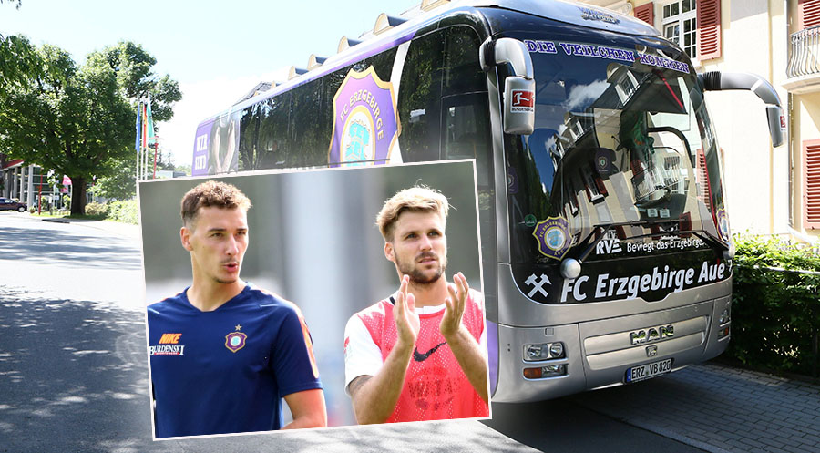 Wydra (l.) und Zulechner vor dem Team-Bus