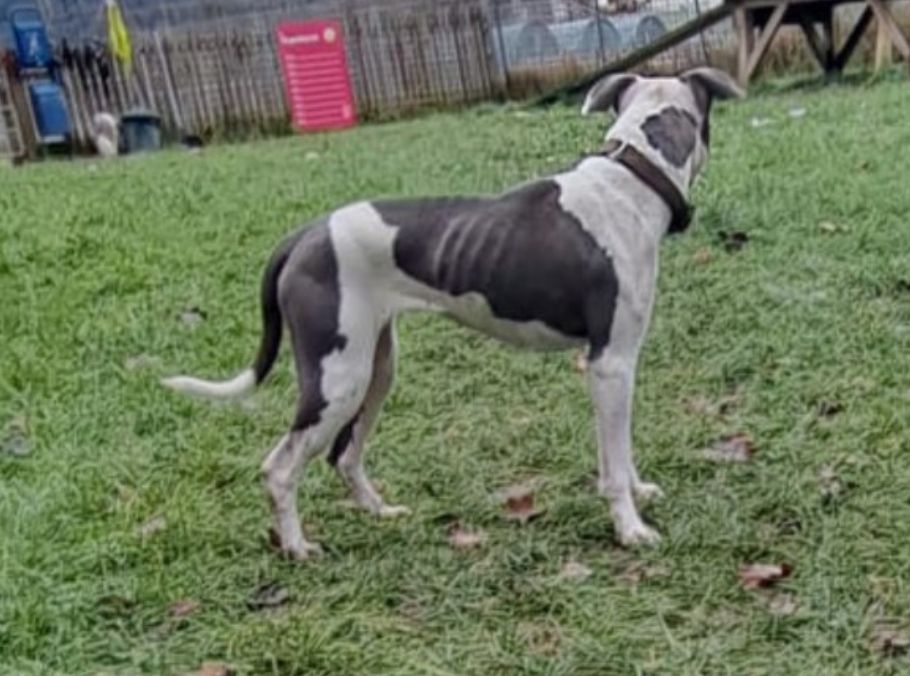 Die Pitbull-Hündin war nach mehreren Wochen ohne Wasser und Futter nur noch Haut und Knochen.