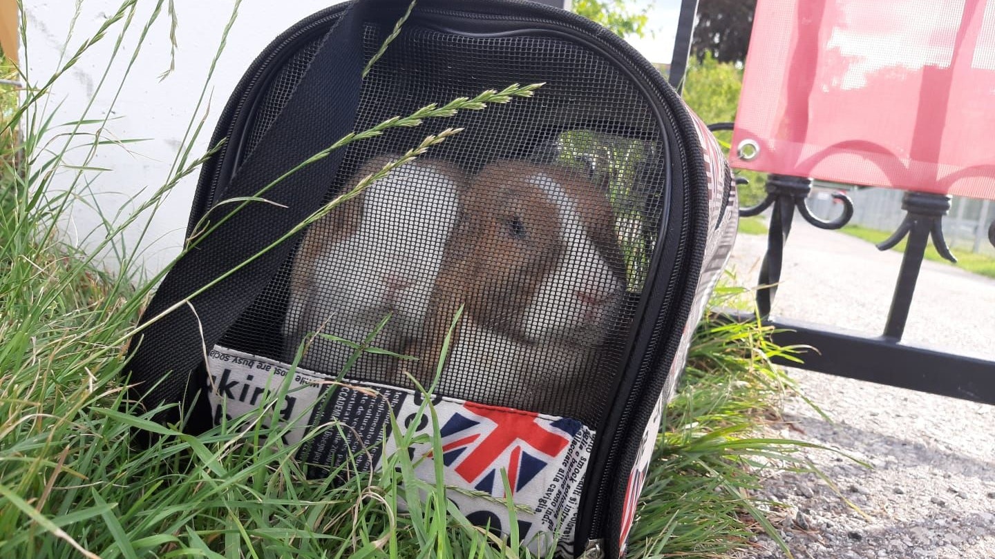 In einer viel zu kleinen Transporttasche wurden diese zwei Kaninchen genau vor der Pfotenhilfe abgestellt.