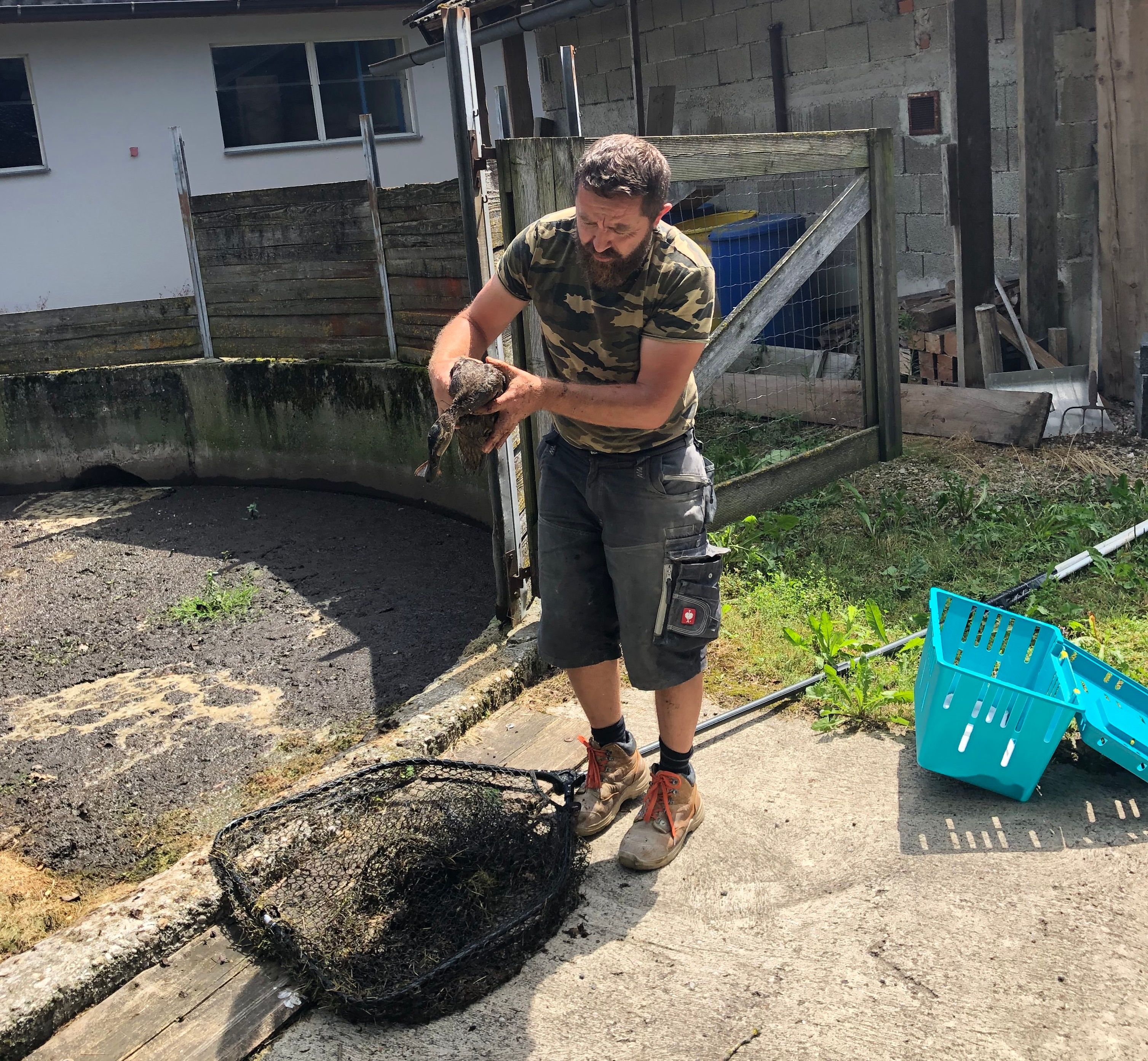 Die Ente konnte mit provisorisch verlängerte Kescher gerettet werden.