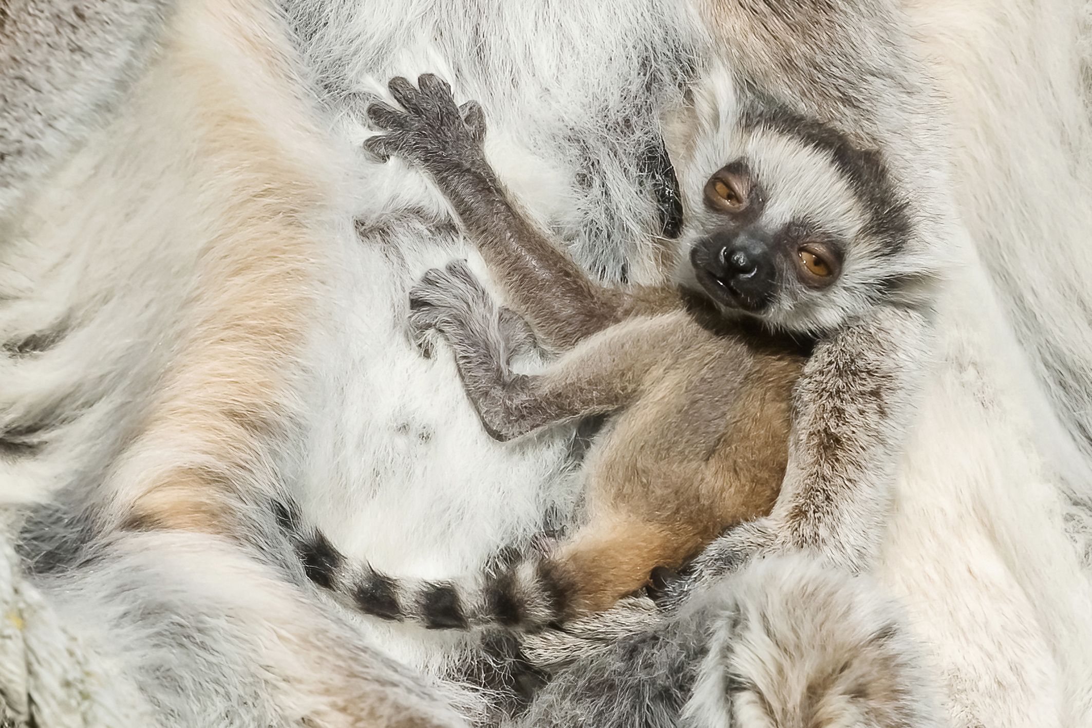 Das kleinen Katta-Jungtier zeigt sich von dem Trubel um seine Geburt offenbar recht unbeeindruckt.