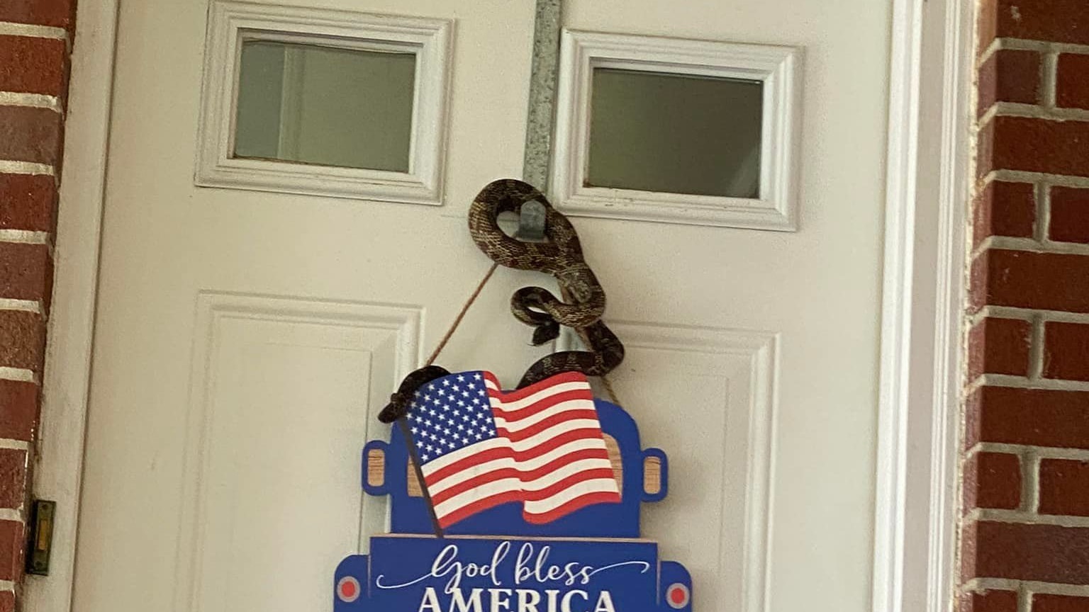 Die 90 Zentimeter lange Schlange wartete auf dem Türschild auf die Hausbesitzerin.