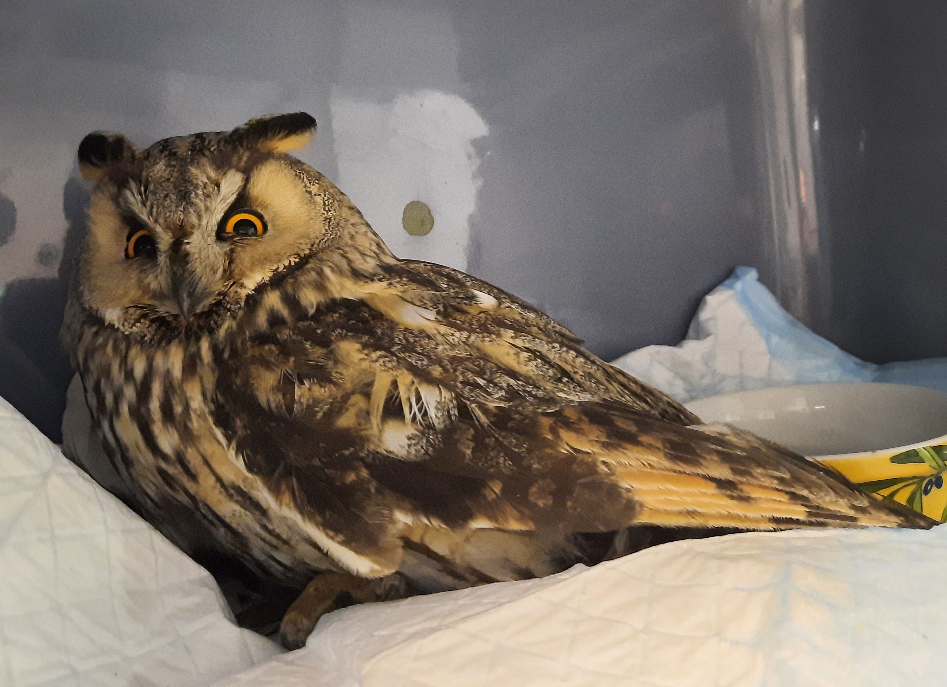 Um fünf Uhr früh am 07.05. saß diese Eule auf den Gleisen der Salzburger Lokalbahn auf Höhe von St. Georgen.