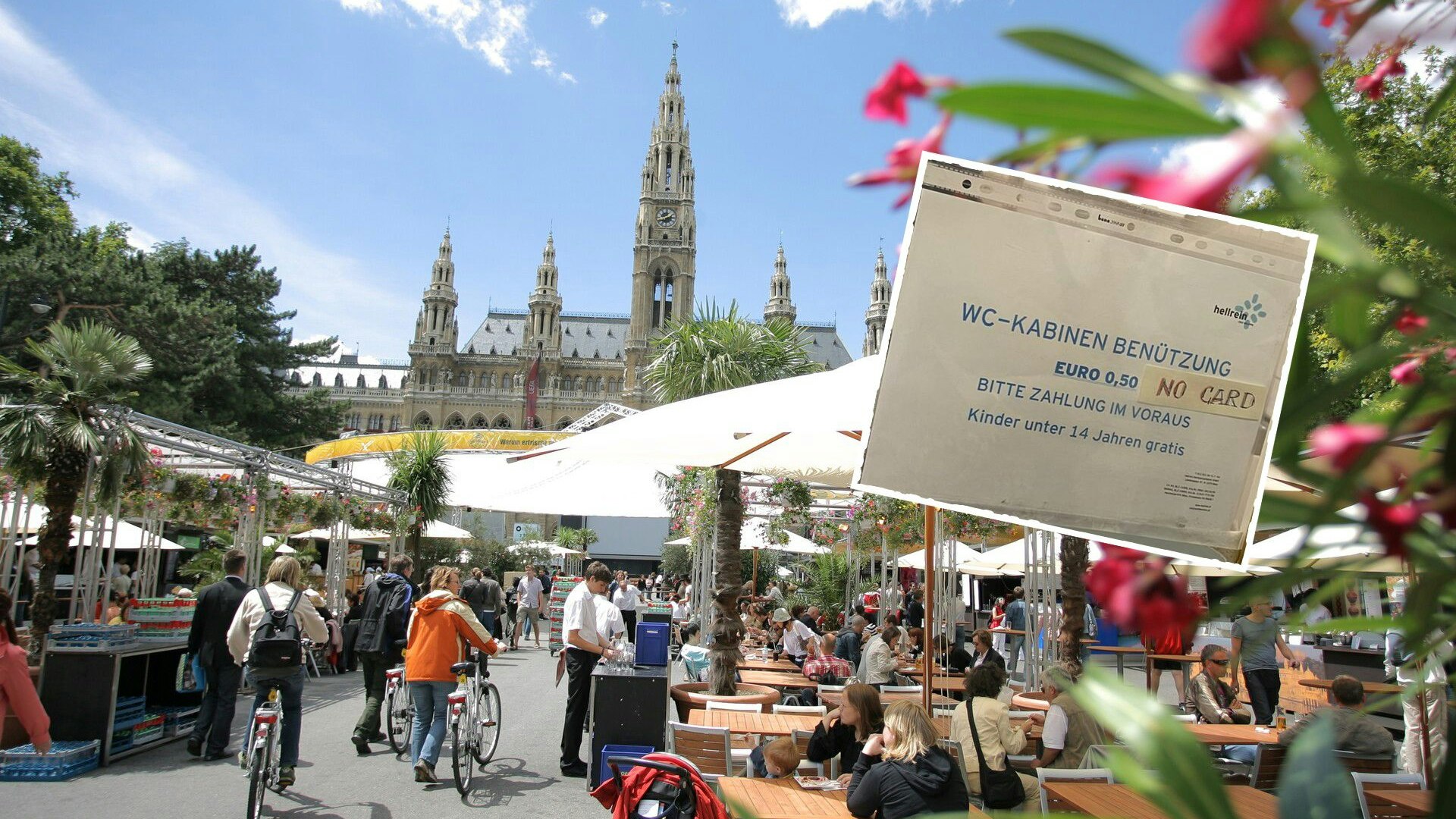 Beim Film Festival am Rathausplatz werden nur Frauen zur Klo-Kasse gebeten.