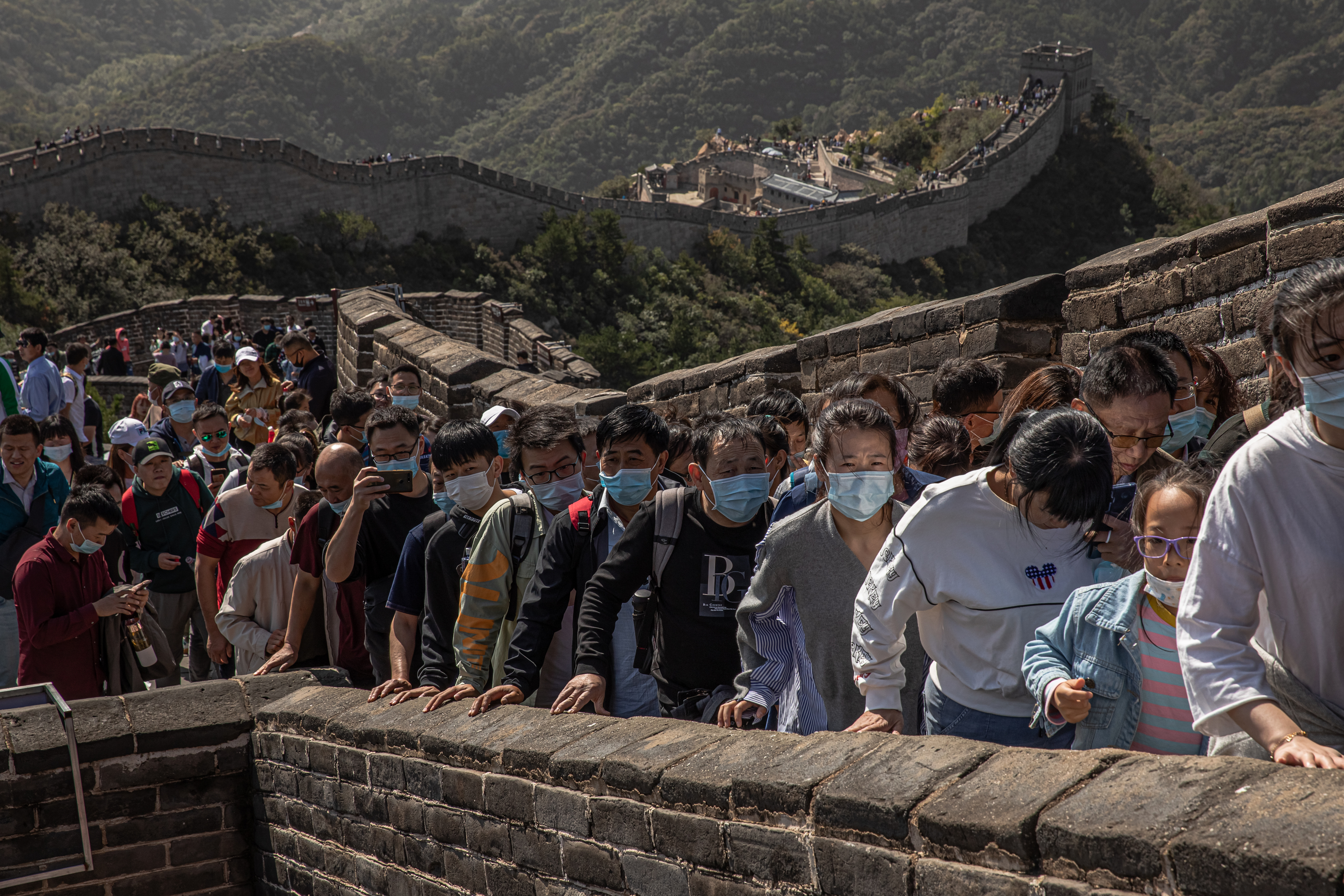 Millionen Touristen strömten auf die Chinesische Mauer, als gäbe es kein Corona.