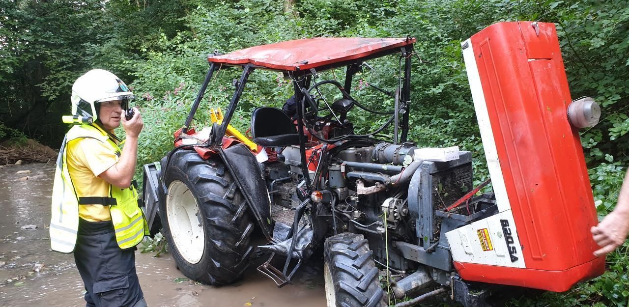 Feuerwehr bei der Bergung des Traktors