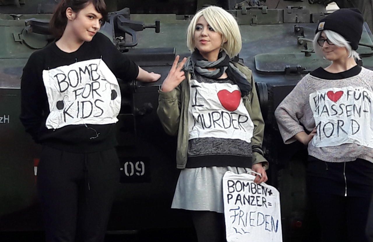 Drei junge Frauen setzten bei der Leistungsschau des Bundesheeres ein Zeichen gegen Bomben und Panzer.