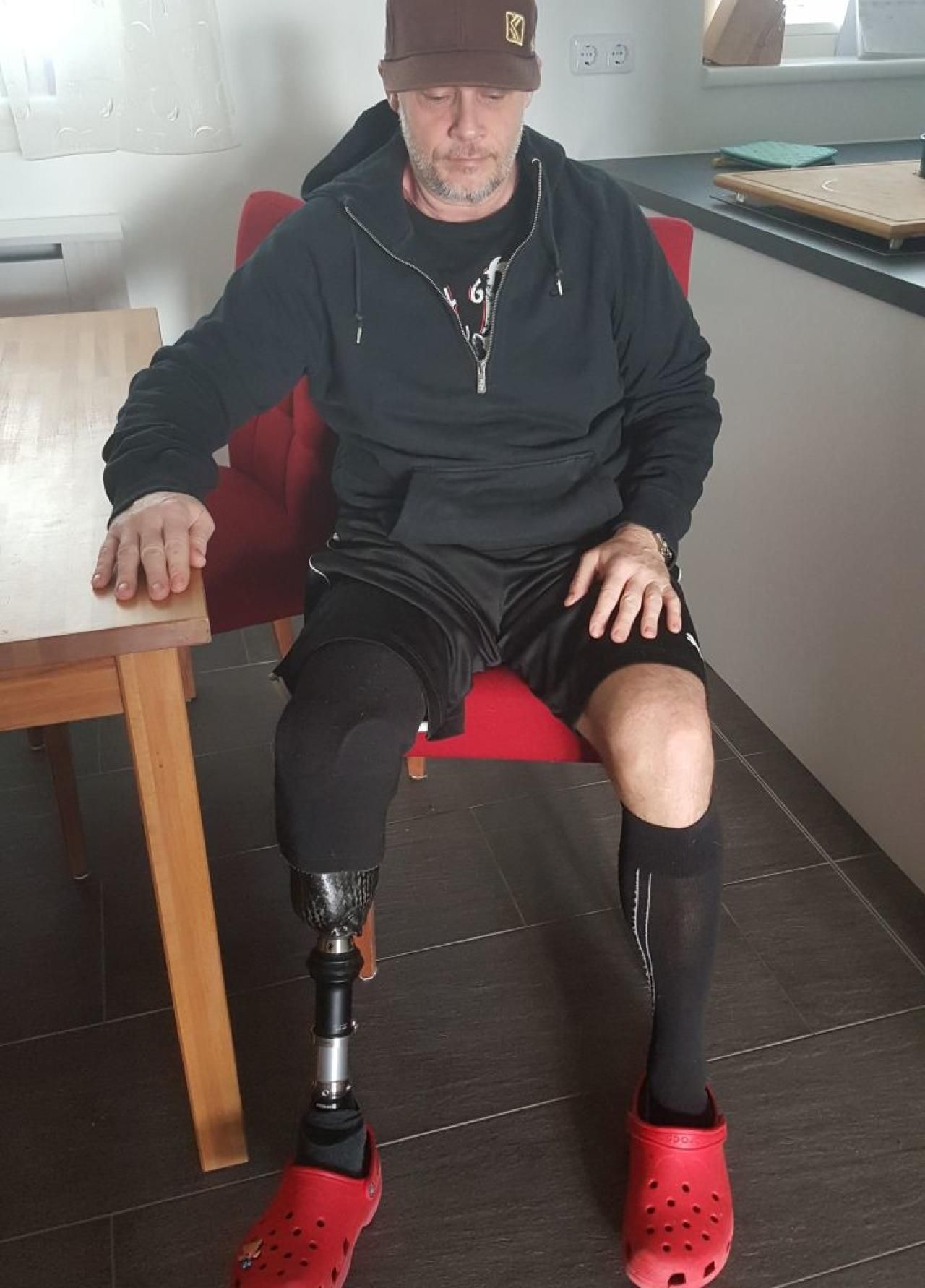 Das rechte Bein wurde unterhalb des Knies amputiert.