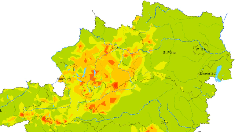Höhe Cäsium-Werte in Teilen Oberösterreichs, in Salzburg und in der Steiermark.