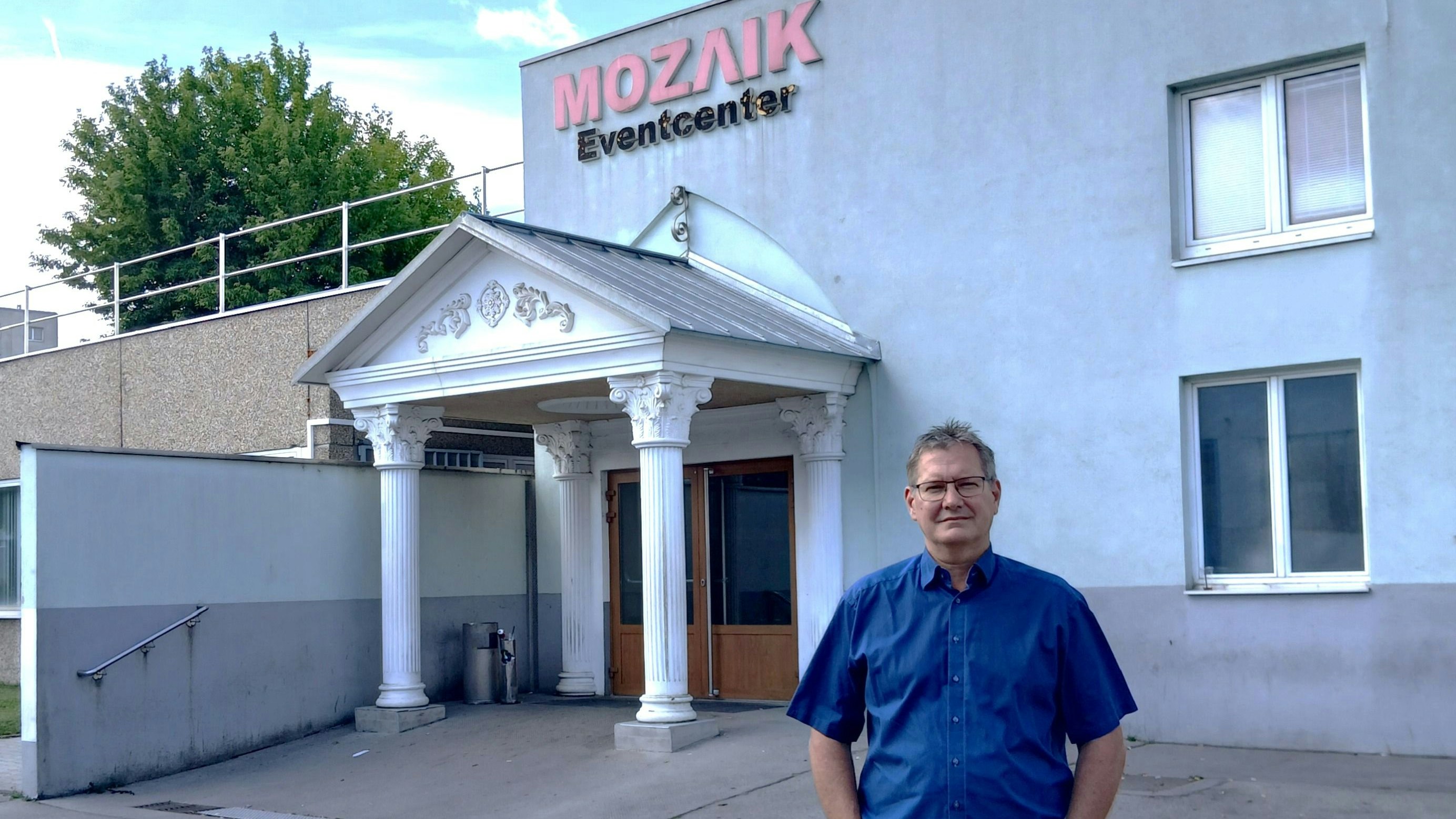 Floridsdorfer Bezirksvorsteher Georg Papai (SPÖ) vor dem 'Mozaik Eventcenter': Hier eskalierte im Sommer der Lärm rund um türkische Hochzeiten.