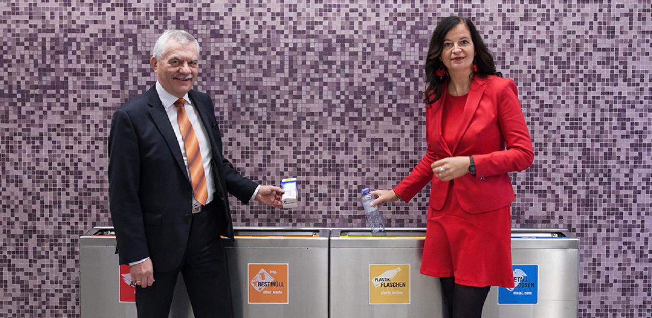 Wiener-Linien-Geschäftsführer Günter Steinbauer und Öffi-Stadträtin Ulli Sima präsentieren die neuen Piktogramme.